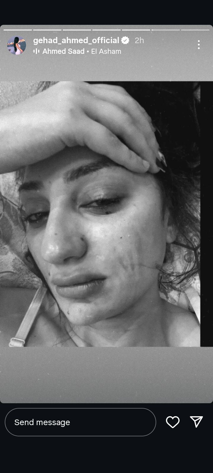 وظهرت جاهد أحمد منذ قليل في ستوري عبر حسابها الرسمي بموقع تبادل الصور والفيديوهات انستجرام، رصدها موقع تحيا مصر وهي منهارة من البكاء ويبدوا عليها الحزن بشكل كبير جدا، بعدما فقدت حب عمرها الذي عاشت معه سنوات وانجبت منه طفلهما رحيم.