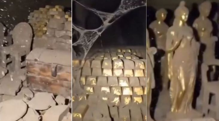 وفي الفيديو الذي لم تتخطى مدته ثواني معدودة، لقطات مظلمة تظهر كميات مكدّسة من قطع وتماثيل ذهبية، فيما ذكرت تقارير محلية أن هذا المقطع أثار فضول الكثيرين وتوجهوا إلى موقع الاكتشاف.