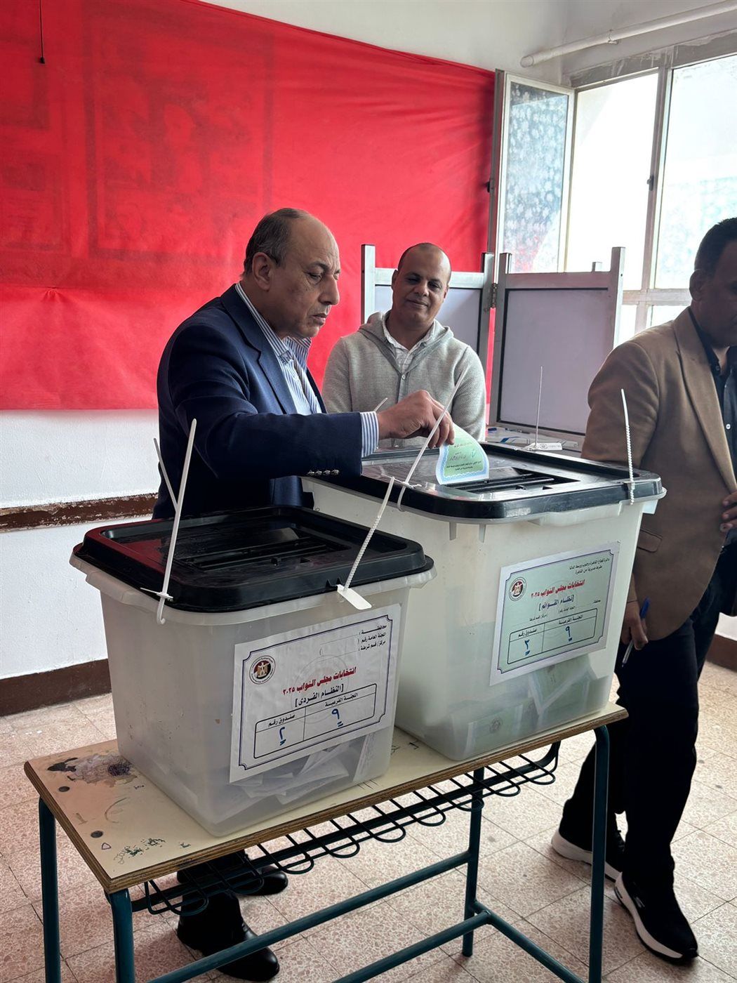 أدلى الفريق محمد عباس حلمي، رئيس حزب حماة وطن، بصوته في انتخابات مجلس النواب، بمدرسة سيزا نبراوي بالتجمع.