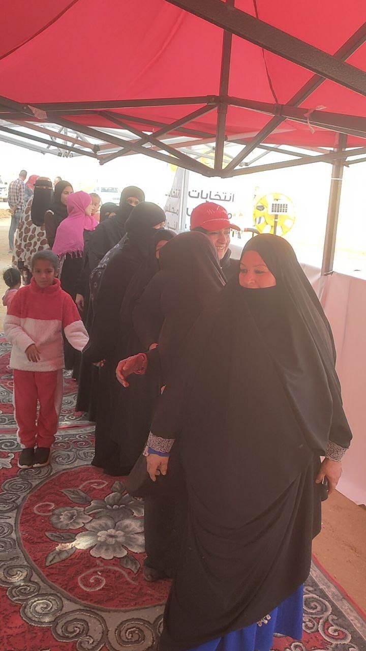 ولم تغب سيدات البدو والقطاع الريفي عن المشهد، حيث رافقن أزواجهن وأبنائهن للإدلاء بأصواتهن في انتخابات مجلس النواب.