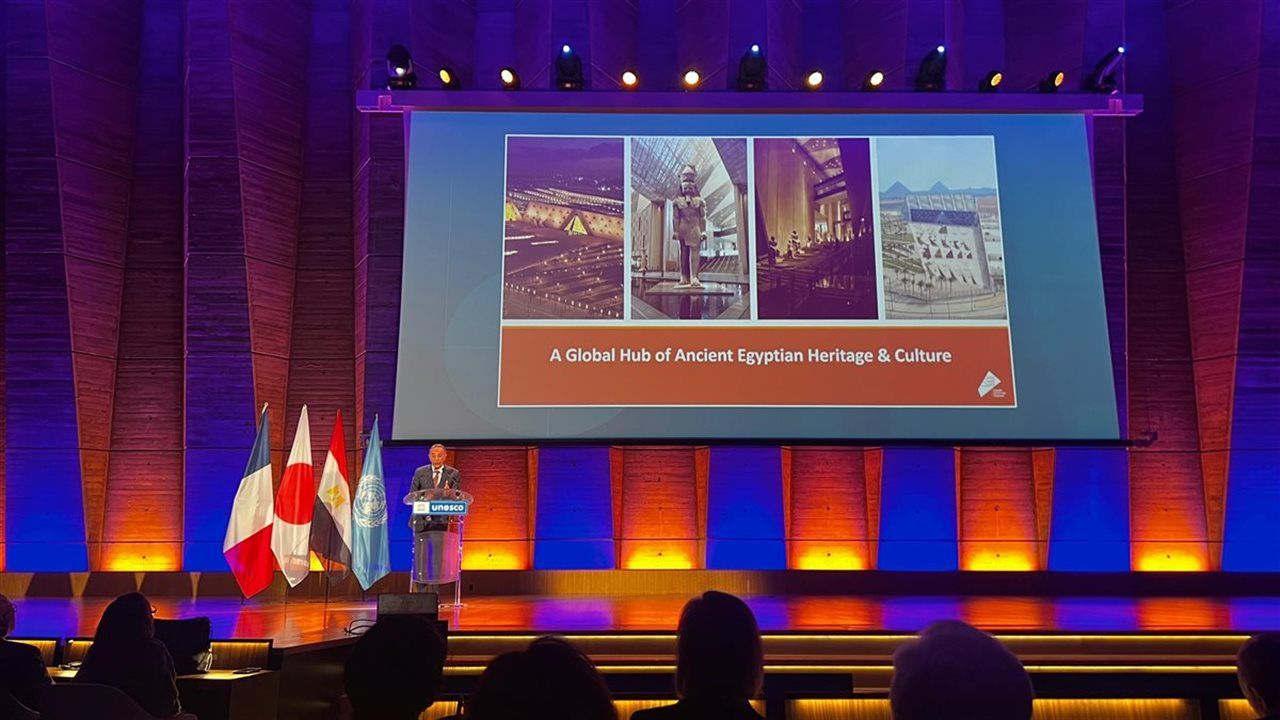 وقد ألقى السفير علاء يوسف، سفير جمهورية مصر العربية في باريس والمندوب الدائم لدى اليونسكو، كلمة افتتاحية أشار خلالها إلى أن افتتاح المتحف المصري الكبير يمثل فصلًا جديدًا في تاريخ مصر، لاسيما أنه أكبر متحف في العالم مخصص لحضارة واحدة وهي الحضارة المصرية الخالدة والتي ظلت على مر العصور بوتقة تنصهر فيها الثقافات المتنوعة وحارسة للتراث الإنساني، لافتًا إلى ضخامة هذا المشروع الذي يضم عشرات الآلاف من القطع الأثرية الفريدة على رأسها المجموعة الكاملة لمقتنيات الملك توت عنخ آمون، والتعاون الوثيق بين مصر واليابان في هذا المشروع، وكذا جهود د. خالد العناني المدير العام لمنظمة اليونسكو في الإشراف على المشروع إبان توليه منصب وزير السياحة والآثار.