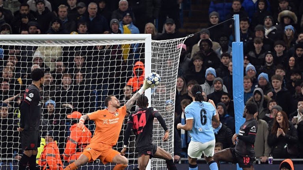 محاولات هجومية من لاعبي مانشستر سيتي على دفاعات باير ليفركوزن بحثا عن هدف التعادل.