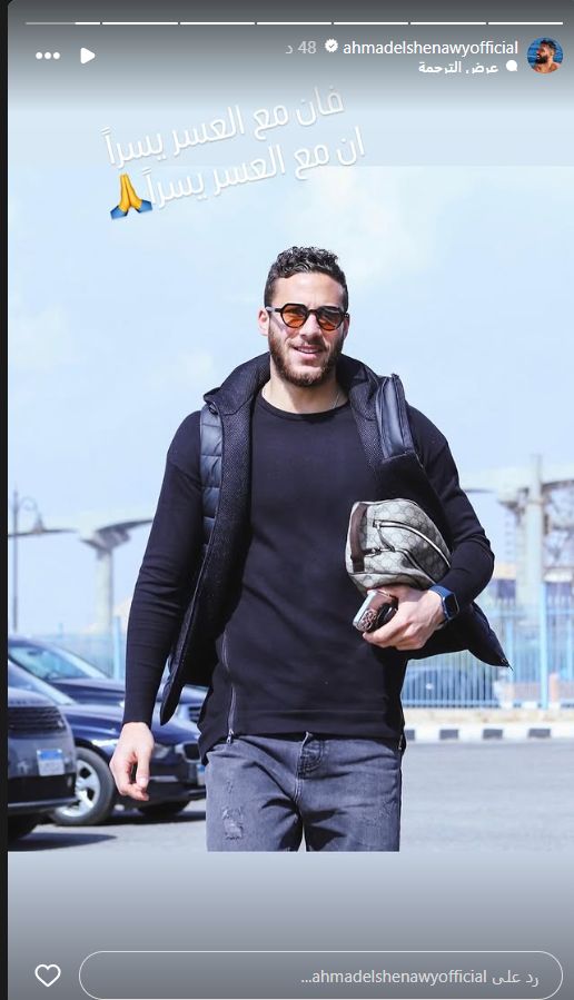 تحيا مصر، ونشر أحمد الشناوي حارس بيراميدز صورة لرمضان صبحي عبر حسابه الرسمي"إنستجرام"، معلقاً":" فإن مع العسر يسرا .. إن مع العسر يسرا".