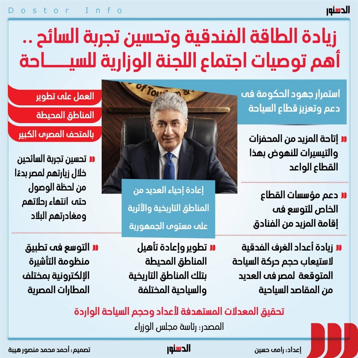 انعقد اجتماع اللجنة الوزارية للسياحة، بمقر الحكومة بالعاصمة الجديدة، برئاسة رئيس الوزراء الدكتور مصطفى مدبولي، وبحضور عدد من الوزراء المعنيين الدكتور هاني سويلم، وزير الموارد المائية والري، والدكتورة منال عوض، وزيرة التنمية المحلية القائم بأعمال وزير البيئة، وشريف فتحي، وزير السياحة والآثار، والدكتور أحمد فؤاد هنو، وزير الثقافة.