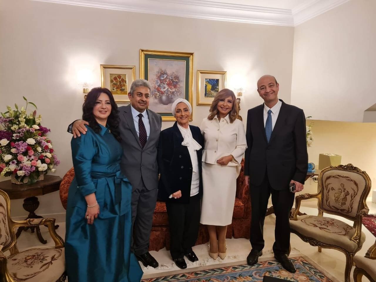 عمرو أديب ولميس الحديدي يحتفل بقراء فاتحة نجله