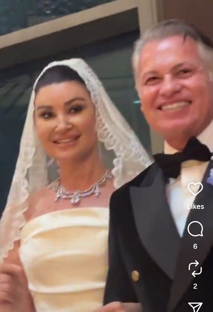 وظهرت أروى جودة في حفل زفافها على رجل الأعمال الايطالي، بفستان عرس أبيض بسيط كاب من الستان، وحرصت على وضع طرحة العروس على رأسها مع ارتداء كوليه يتناسب مع اطلالاتها، ليس هذا فقط بل وضعت بعض لمسات المكياج الهادئة، ودخلت دخلة العروس المصري الأصيلة، على الزفة البلدي.