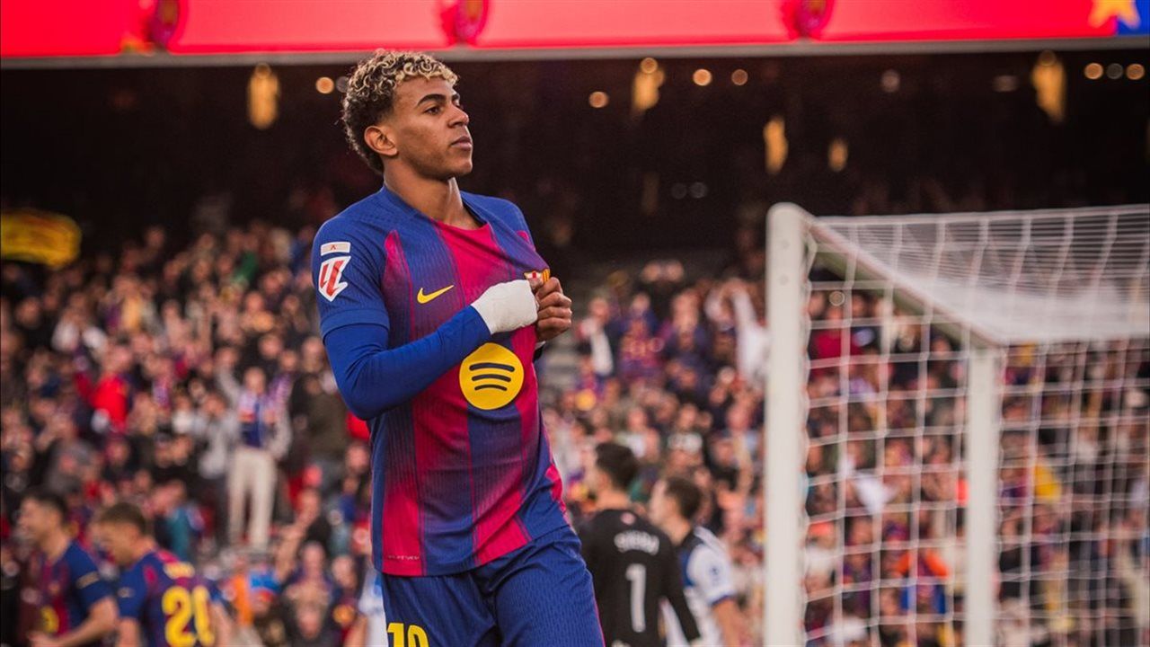 ثم سجل لامين يامال، هدف التعادل لبرشلونة في الدقيقة الثامنة.