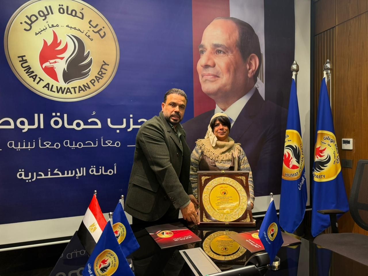 كرم حزب حماة الوطن بمحافظة الإسكندرية نسرين محمد عبدالمعطي اخصائي نفسي اول بمدرسة محمد عبد السلام المحجوب بادارة شرق محافظة الإسكندرية وذلك عقب الاعتداء عليها من قبل عدد من طلاب المدرسة وإلقاء القمامة عليها .