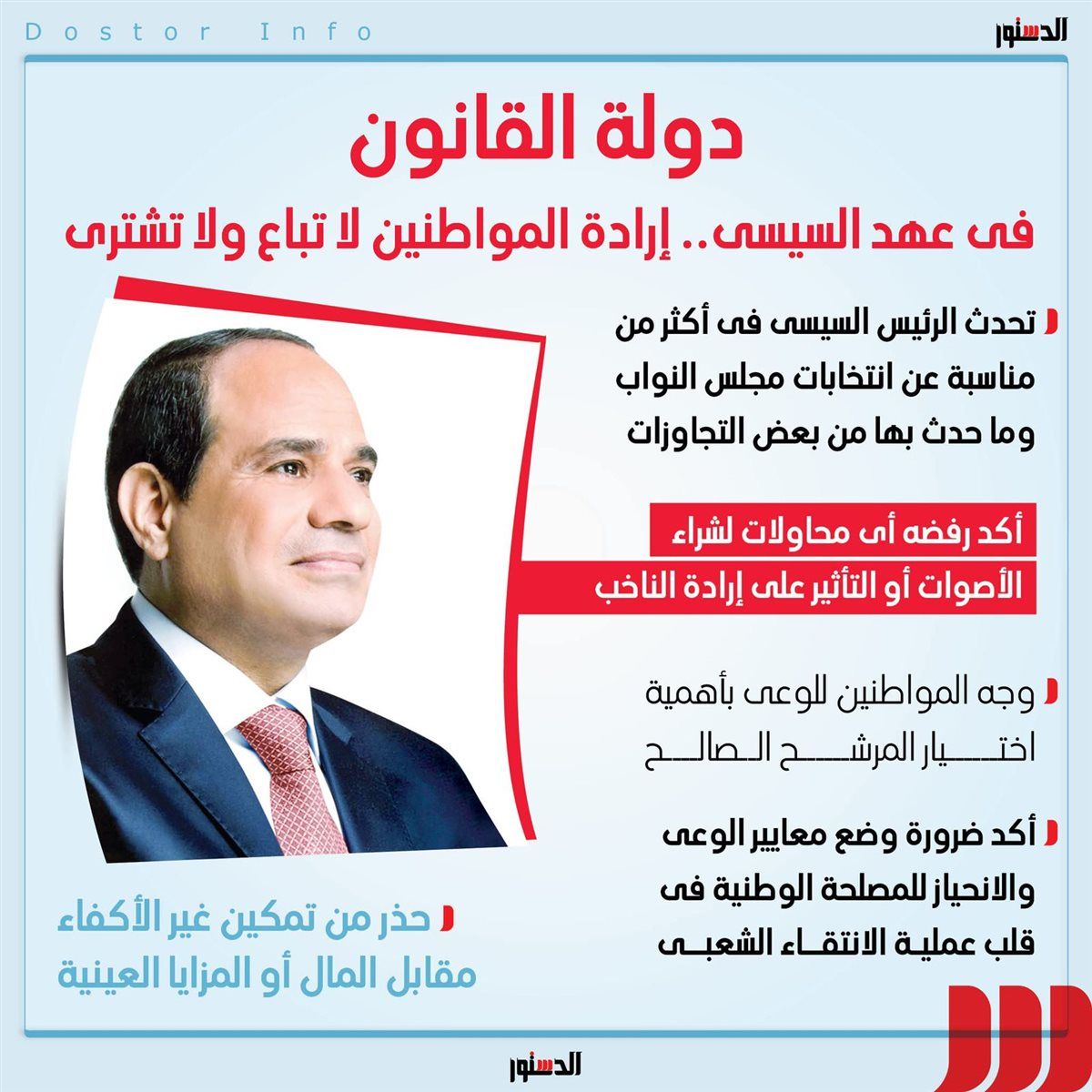 * تحدث الرئيس السيسي في أكثر من مناسبة عن انتخابات مجلس النواب وما حدث بها من بعض التجاوزات.