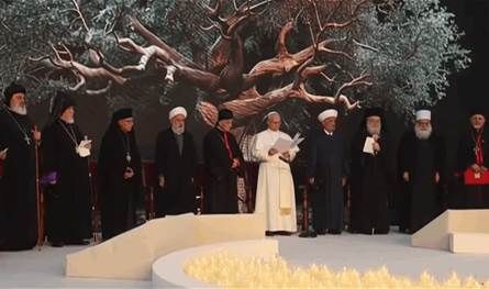 وتوالت كلمات رؤساء الكنائس والمراجع الإسلامية لتشدد على ثوابت مشتركة: البطريرك يوحنا العاشر يازجي رحب بالبابا في "البلد الذي يتنفس في بيئتيه المسيحية والإسلامية”، فيما أكد مفتي الجمهورية الشيخ عبد اللطيف دريان أن لبنان بلد التعايش والتعدد الطائفي والحرية الدينية وحقوق الإنسان، مستعيداً نماذج تاريخية في العيش الواحد ووثيقة الأخوّة الإنسانية، ومعتبراً أن لبنان "أرض هذه الرسالة". الكاثوليكوس آرام الأول رأى أن لبنان بلد تنوّع يتجلّى في وحدة تحفظ هذا التنوع، وأن التعايش الإسلامي–المسيحي يجعله "جسراً بين الشرق والغرب". نائب رئيس المجلس الإسلامي الشيعي الأعلى الشيخ علي الخطيب شدد على ثقافة الأخوّة الإنسانية، وعلى أن التعايش السلمي هو القاعدة، وأن ما يجري من حروب باسم الأديان لا يعبر عن حقيقتها، واضعاً "قضية لبنان" بوجه العدوان الإسرائيلي والأزمات بين يدي البابا. البطريرك مار إغناطيوس أفرام الثاني تحدث عن "مسكونية الدم" في المشرق ومعاناة المسيحيين والمسلمين جراء الحروب والإرهاب والعدو الإسرائيلي، داعياً إلى سلام مبني على العدالة وكرامة الإنسان ودولة يسودها القانون. شيخ العقل لطائفة الموحدين الدروز سامي أبي المنى شدد على “الشراكة الروحية والوطنية” ولبنان كنموذج “التنوع في الوحدة”، وعلى أن اجتماع المسلمين والمسيحيين قادر على إحداث “بارقة أمل” وجعل صوت السلام أقوى من أصوات الحروب. القس جوزف قصاب وصف لبنان بأنه “وطن صغير أنهكته الحروب لكنه لم يفقد الرجاء”، فيما اعتبر رئيس المجلس الإسلامي العلوي الشيخ علي قدور أن زيارة البابا “رسالة رجاء” تؤكد أن لبنان، رغم محنه، قادر على استعادة دوره كـ”رسالة حرية وعيش مشترك”، وأن الإنسان هو “القيمة العليا” وأن الأوطان تُبنى بالتلاقي والشراكة والاحترام المتبادل.