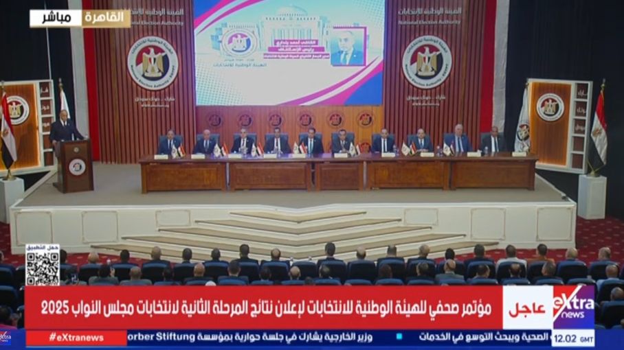 انطلق منذ قليل مؤتمر الهيئة الوطنية للانتخابات لإعلان النتيجة الخاصة بالمرحلة الثانية لانتخابات مجلس النواب 2025.