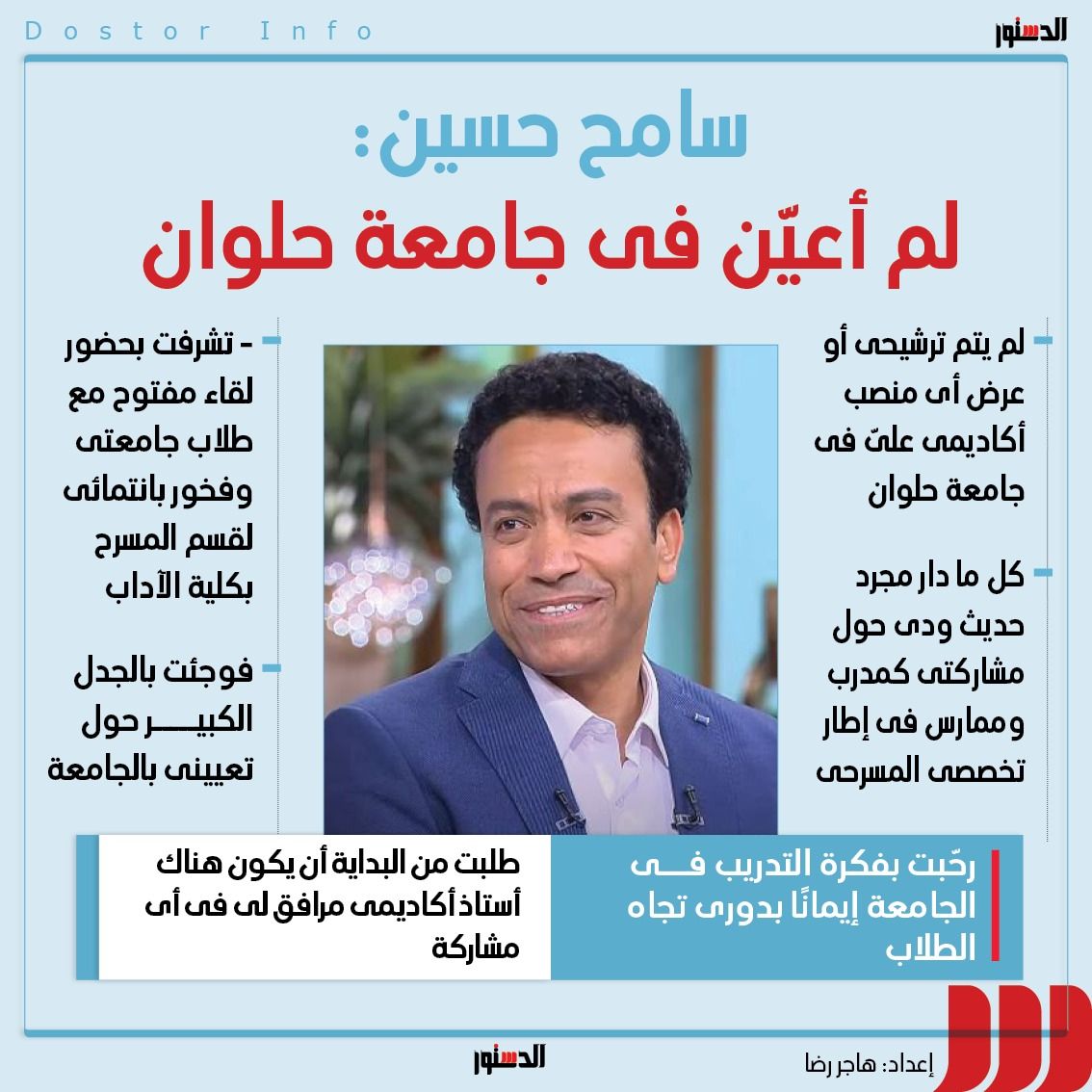 - كل ما دار مجرد حديث ودي حول مشاركتي كـ مدرب وممارس في إطار تخصصي المسرحي.