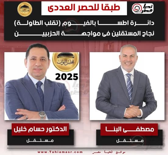 أظهرت نتائج الحصر العددي لجولة الإعادة في دائرة إطسا بمحافظة الفيوم، تقدم المرشح المستقل مصطفى البنا وحسام خليل "مرشح مستقل أيضا".