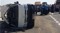 بلاغا بوقوع حادث إنق لاب سيارة ميكروباص بطريق القاهرة الفيوم الصحراوي،