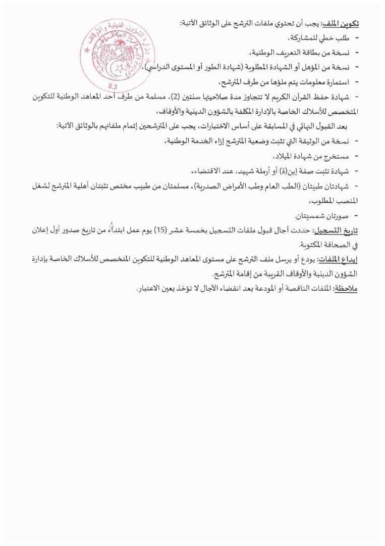 أعلنت وزارة الشؤون الدينية عن فتح مسابقة للالتحاق بالتكوين المتخصص الموجّه لأسلاك إدارة الشؤون الدينية والأوقاف.