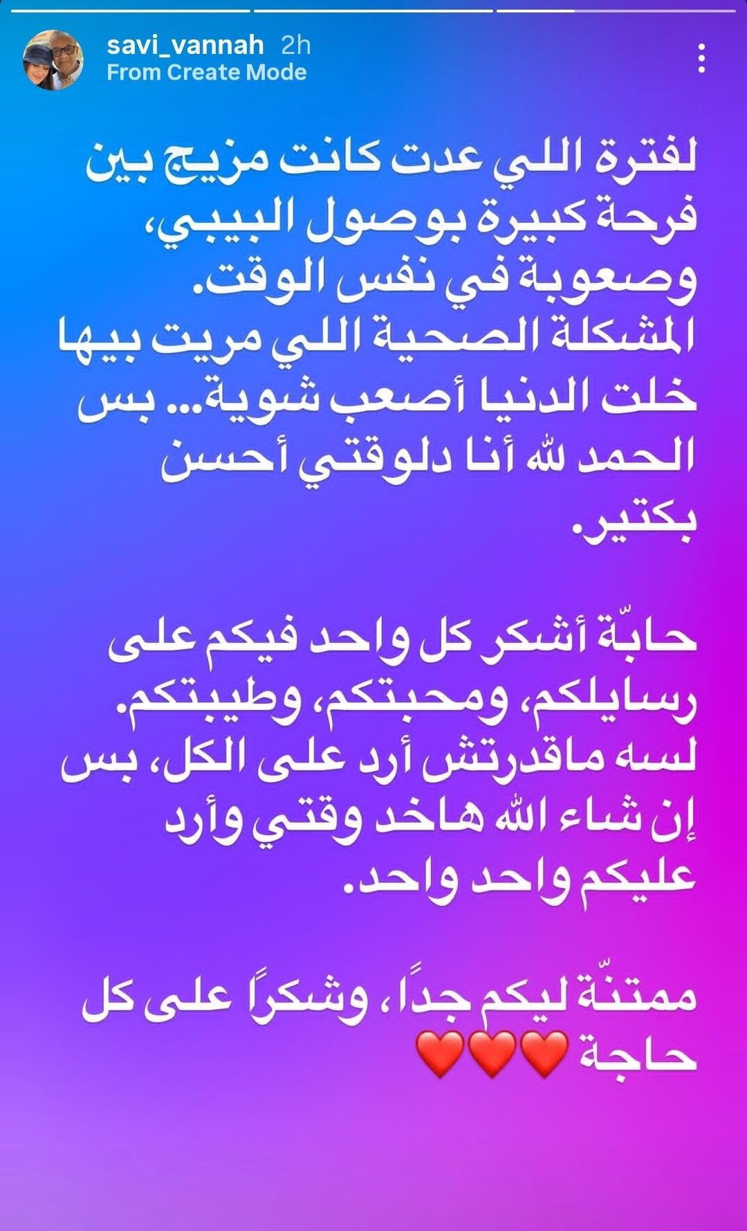 كشفت زوجة الفنان محمد محمود عبد العزيز عن تطورات حالتها الصحية بعد أسابيع من ولادة صعبة واجهتها بمضاعفات صحية مفاجئة، مؤكدة أنها أصبحت أفضل وأن مرحلة التعافي مستمرة، وفي رسالة صادقة عبر حسابها على موقع تبادل الصور والفيديوهات إنستجرام نستعرضها فيما يلي.