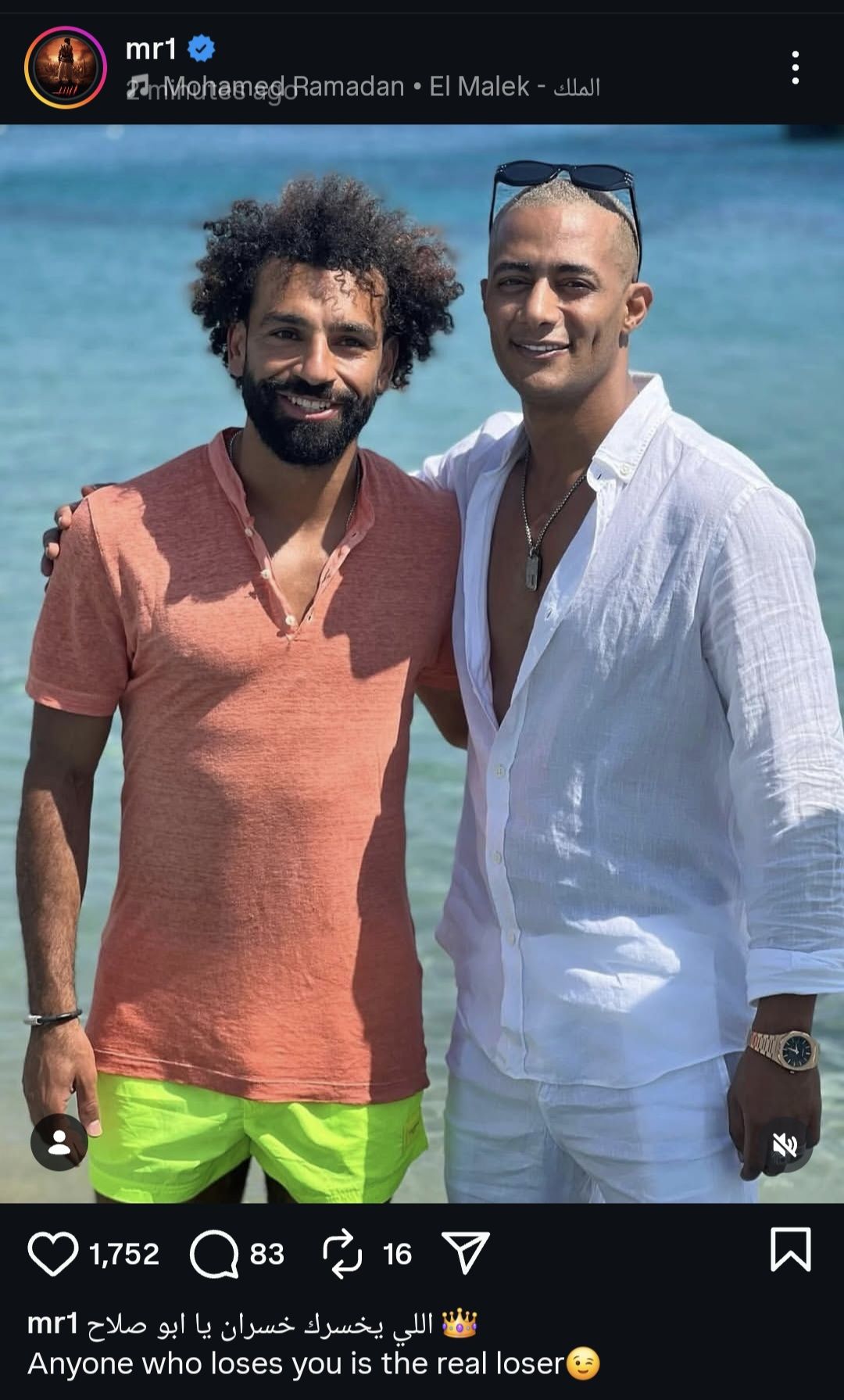ونشر رمضان رسالة دعم عبر حساباته على السوشيال ميديا رصدها موقع تحيا مصر قال فيها: «اللي يخسرك خسران يا أبو صلاح»، في إشارة إلى مكانة اللاعب العالمية وتأثيره الكبير داخل وخارج الملعب.